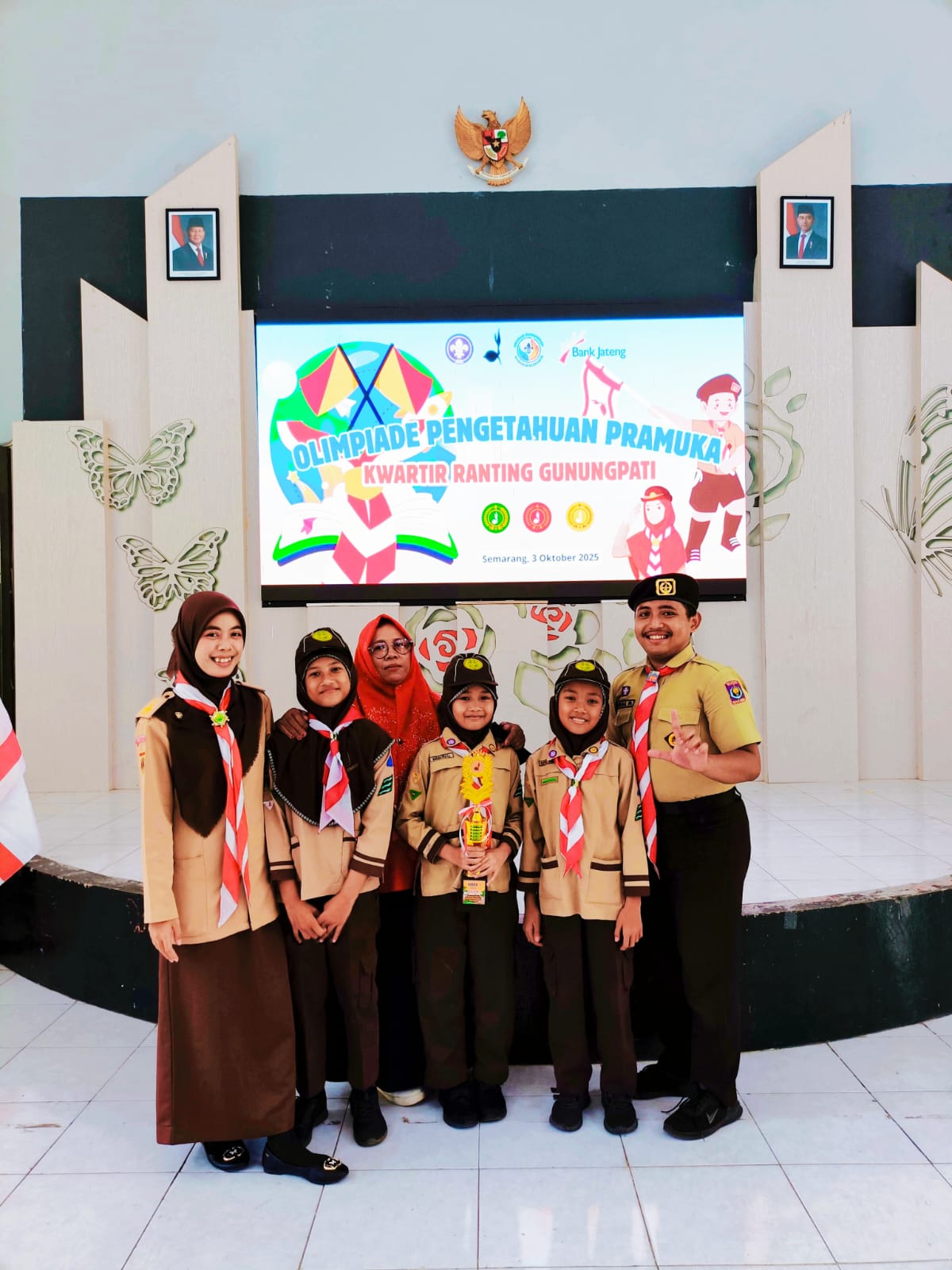 Kota Semarang (Humas) – Semangat juang dan kecerdasan luar biasa kembali ditunjukkan oleh peserta didik MIN Kota Semarang. Tiga siswa kelas 5 berhasil mencuri perhatian dan mengharumkan nama madrasah, dengan meraih Juara 1 dalam ajang Olimpiade Pengetahuan Pramuka (Lomba Cerdas Tangkas Pramuka – LCTP) yang diselenggarakan oleh Kwartir Ranting Gunungpati di Aula Kecamatan Gunungpati, Jumat (3/10/2025).